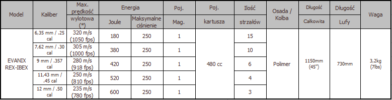 • Wiatrówka EVANIX REX-IBEX kal. 6.35mm/ 7.62mm/ 9mm/ 11.43mm