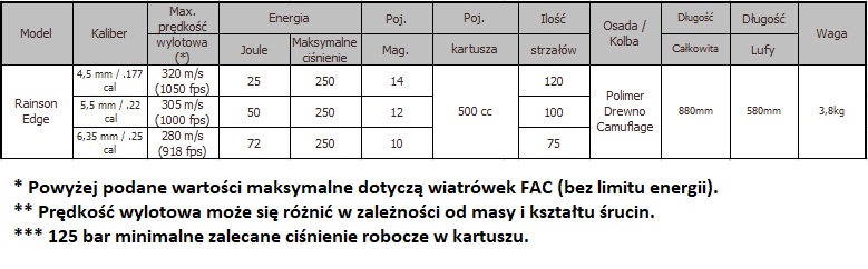 Wiatrówki Rainson z serii EDGE odznaczają się bardzo dobrą celnością, taktycznym wyglądem, oraz dużym kartuszem co zapewnia dużo większą ilość strzałów.