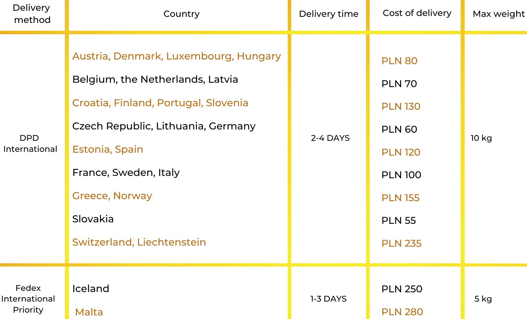 Sposób dostawy uzależniony jest od wielkości produktu.